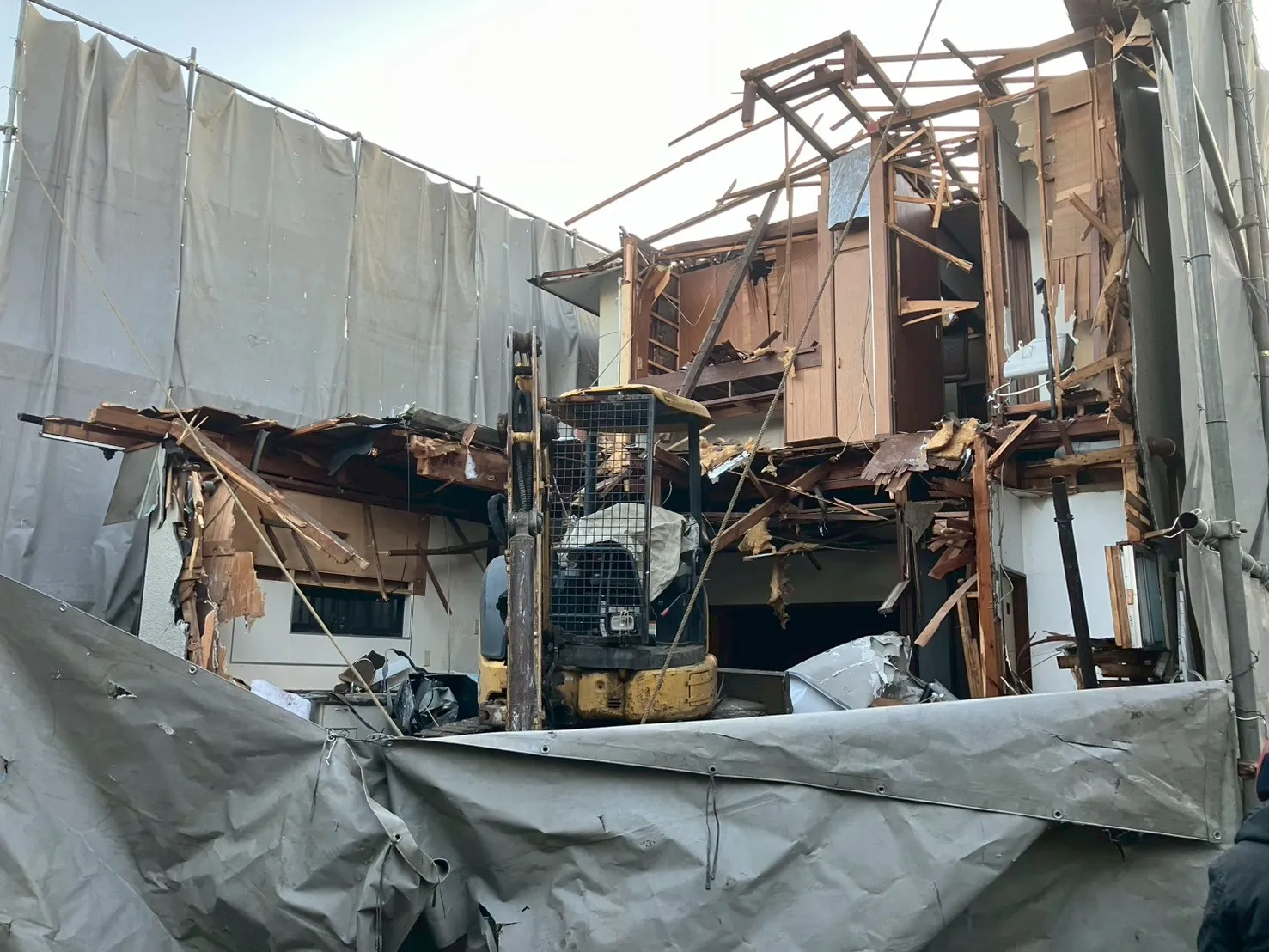 重機が入っても変わらない「丁寧な解体」本日の作業で、建物の大部分が解体され、現場の景色が大きく変わりました。