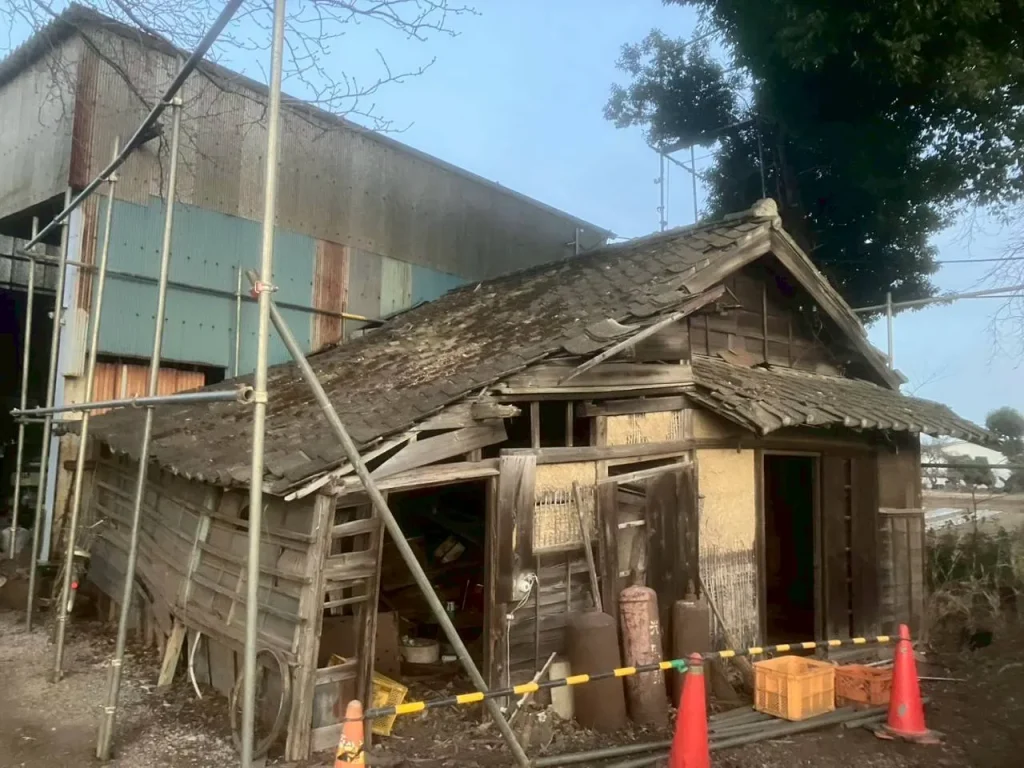 所沢市の住宅街にて、木造平屋の解体工事が着工しました。 平屋の現場は、二階建てに比べると敷地や近隣との距離にゆとりがあるケースも多いですが、私たちは決して気を引き締めることを忘れません。